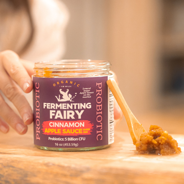 -Has half of the amount of naturally occurring sugar than regular non-fermented apple sauce (bacteria love to eat sugar and carbohydrates so they can multiply into the millions and billions. They eat most of the sugars out of the apple sauce, so you get a low sugar apple sauce with lots of healthy bacteria)