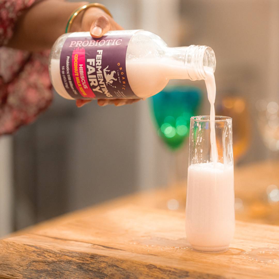 Hibiscus Coconut Milk kefir is a 100% Vegan and powerful drink that strengthens your gut and boosts your immune system. It has the highest amount of rich and diverse healthy bacteria out of any other probiotic food/drink on the market. It’s rich in antioxidants, vitamins, and fiber. The coconut milk kefir has close to 50 different strains of active healthy bacteria that are made with a unique wild fermentation technique and superior ingredients to support your gut with the ultimate diversity. 938 Billion CFU/bottle