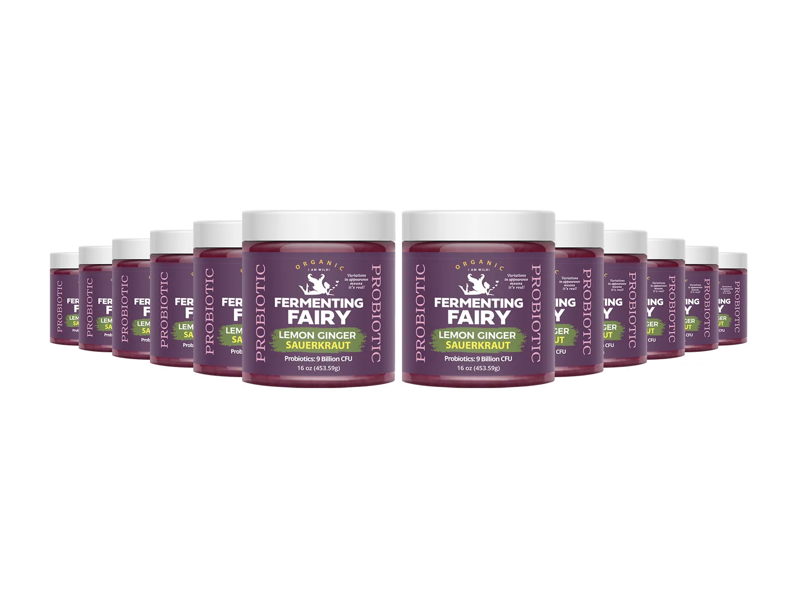 One jar of our lemon ginger sauerkraut boasts 9 Billion CFU.Lemons, green and red cabbage are extremely high in vitamin c, electrolytes, folate, potassium, and antioxidants.Ginger has anti-inflammatory, anti-nausea, anti-vomiting, and anti-tumor properties with high antioxidants.